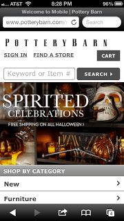 It doesn’t matter what type of device you use to visit their blog or website. They are very mobile friendly. As you can see in the following picture, the eye-catching photo takes the center stage. Some brands would be fine to have a mobile site with well-organized links and easy navigation. Pottery Barn is a brand that must do more. Because their photos stand out on every other platform, they have to carry it across to the mobile site as well to maintain brand consistency.