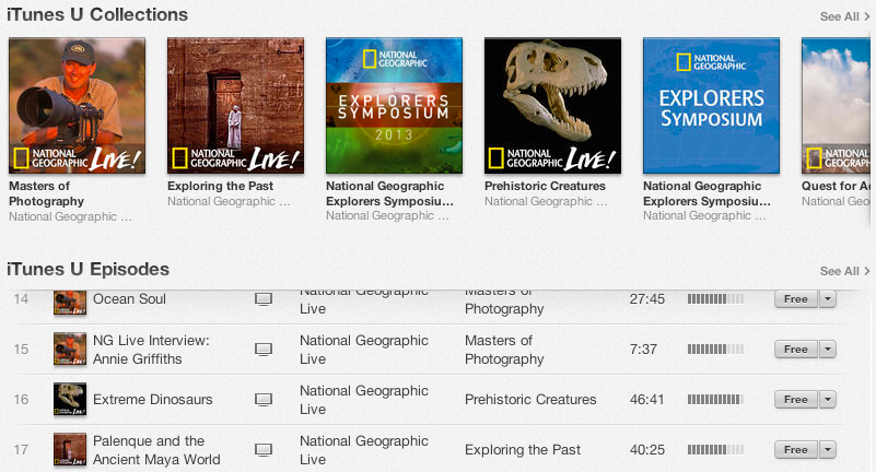 They also provide free educational material through iTunes U for photography and information on dinosaurs and ancient civilizations.