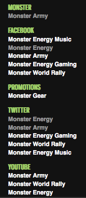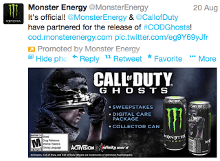 They are very selective in how they choose their athletes. They have to be great at what they do, extreme in nature, very competitive and must already have a strong personal brand on social media. The Monster audience is comprised of individuals who either participate in extreme sports or have an interest in all things extreme. They literally take their marketing to the streets with their sponsorships. They also recently partnered with the Call of Duty: Ghosts video game, which is popular among the same audience.