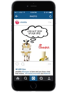 This Snap features a text message gone wrong when Cow accidentally texts Chikin. It’s a common, relatable mistake and helps to show the Eat Mor Chikin Cow’s personality, targeted towards millennials. Each line appears in sequence as the snap advances.